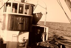 Uke 29 / Veke 29Her på veg til hamn i svert fint veir. Hadde vore ca 37 mil av Runde med seigarna, og hadde ein god fangst om bord. Foto: Magnar Høydal (1962) MB «Hai», M-94-HØ, var bygd i Romsdalen i 1916. Lengde var 40 fot, og motor Rekord 26 hk. Ombygd i 1928 til 51 fot. I 1937 fekk den ny motor «Wichmann» 40hk, og forlengd til 53,8 fot. Lengste lengde oppgitt til 60 engelske fot. Ein «Kromhout»motor på 150 hk. vart innsett i 1965. Båten vart kondemnert i 1985, og enda sine dagar på botnen av Voldsfjorden. Hans Goksøyr selde båten i 1920 til Matias Sævik, og Anton og Paul Flusund. Sønene deira Petter Sævik, Harald A. Flusund og Ragnvald P. Flusund overtok båten i 1937. I 1952 vart det endring i eigarskapet. Rangvald vart åleine då dei andre ville selja sine partar, Peder og Olav Leine kom då inn som medeigarar. I 1978 overtok partreiarlaget Ragnvald Flusund båten, og selde den vidare til Inge Remøy og sonen Oddmar Remøy i 1981. Dei brukte båten til garn og linefiskje. Siste to tre åra vart båten rigga til brugdefangst. Oddmar hadde då samarbeid med ein kar frå Trøndelag, han hadde utstyr til brugdefangst. Les meir... |