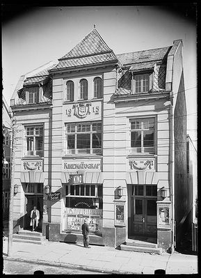 Boholms gamle forretning ble revet og Verdensteateret kinematograf sto ferdig i 1916. Den 4. juni 1916 var det åpningsforestilling med «Skjæbnens Søn eller Madam de Thébes spaadom». Karl J. Hall var ansatt som kinobestyrer.