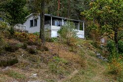Svartskogveien på vei ned Svartskogbakken, med Bunnefjorden i bakgrunnen.