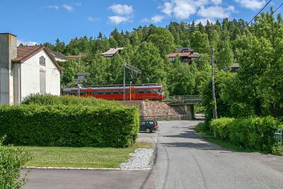 Parti fra Tjernveien på Solbråtan med Østfoldbanen i bakgrunnen.