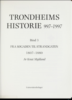 Tittelbladet på Knut Myklands bind av Trondheim bys historie.