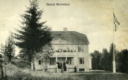 Skarrud barnehjem Foto: Ukjent fotograf Skarrud barnehjem var opprinnelig et barnehjem for barn fra tuberkuloserammede familier. Det ble etablert på gården Skarrud på Fiskum i Øvre Eiker kommune i 1924. Det var sanitetskvinnene i Hokksund, Vestfossen og Fiskum som gikk sammen om dette tiltaket. En donasjon fra Mina Markenrud, leder av den lokale sanitetsforeningen, på 10.000 kroner gjorde byggingen mulig. Etter krigen var ikke lenger tuberkulose en så stor helsetrussel, og driften ble fra 1953 lagt om til psykiatri overfor «barn med nervøse lidelser». Det var 10-12 ansatte, men kun bestyrerinnen var faglært. I 1972 overtok Buskerud fylke driften, som i 1983 ble flyttet til Haugfoss i Modum kommune. Les mer …