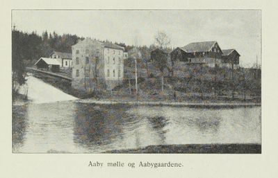 Åby mølle med Åbygårdene i bakgrunnen. Fra boka Asker, utgitt 1917.