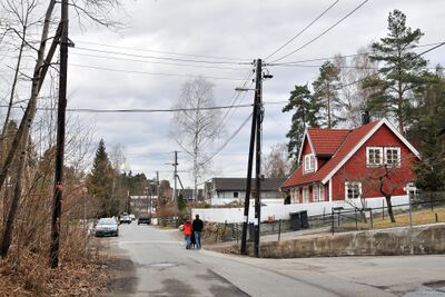 Fra veiens start i Nordstrandveien. Til venstre, Nordstrand skole.