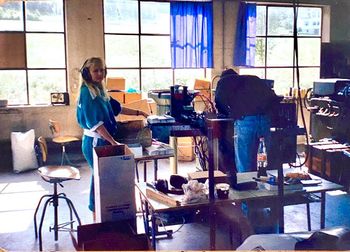 Plastgranulatet og fargen blei blanda i ein stor trommel som gjekk ein halvtime av gongen. Ein produserte ein farge av gongen.