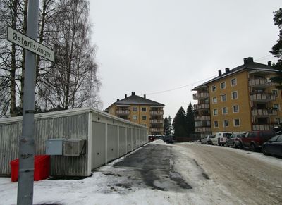 Ved veien ligger blokker som tilhører Nylænde borettslag.