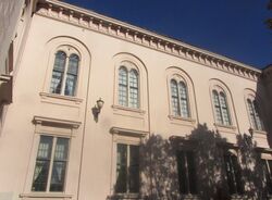 Gamle Logen, fasade (langvegg) mot Festningsplassen og det nye Forsvarsdepartementet.