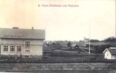 Østre Toten realskole ble grunnlagt i 1875 som Østre Toten private middelskole. Dette var en seksårig skole uten eksamensrett. Fra 1882 ble middelskolen en del av den kombinerte Østre Toten middel- og amtsskole. I 1900 tok den kombinerte ordningen slutt, og middelskolen ble samtidig kommunal, fireårig og fikk eksamensrett. Det ble oppført et nytt skolebygg på Kraby, som ble tatt i bruk i januar 1903. Fra 1920 var middelskolen treårig og bygde på eksamen fra folkeskolen.