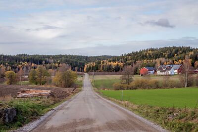 Parti fra Agnaltveien med Vestre Agnalt gård i bakgrunnen.