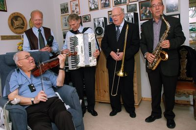 Fra 1986 til 1999 spilte Alf også i «Levanger veteranorkester». Men etter ryggoperasjonen som skulle gi ham et bedre liv, ble han lenket til spesialstolen sin. Den siste spillejobben gjorde han i heimbygda; på Binde samfunnshus. Ringen var sluttet, her hadde han også starta, nå var det ugjenkallelig, for han måtte ha hjelp til å komme på og av scenen. Det ble for strabasiøst. Alf kan se tilbake på er et rikt liv blant gode musikervenner, hvorav 22 år i «Bakkans». Det var et eget strøk over tonen i fela hans Alf. Mange har merket seg det. Da «Tjukke slekta» spilte inn CD`en «Trad og arr» sammen med Henning Sommerro, ble Surnadalingen glødd av fiolinistens intro: «Der let det fel, ja!». Hvor mange innspillinger det er blitt med Alf, vet han knapt sjøl. Det var 72, men etter at fingrene også begynte å krølle seg er det kommet til et titalls nye! Valsen «Blikkenslagerfruen» er etter Alfs mening hans beste. Den skal framføres med trollstemt fele. Både den og reinlenderen «Blikkenslageren» og polkaen «Sjuskrættingen» står seg som gode danselåter, mener han. Disse er selvsagt bare eksempler blant mange flere låter som holder.
