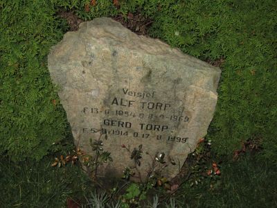 Alf Torp er gravlagt på Tønsberg nye kirkegård. Tittelen veisjef er benyttet på gravminnet.