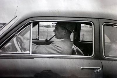 | Han har ikke helt tallet, men mener han har hatt tett på 10 biler siden han kjøpte sin første i 1932, en toseters Plymouth. et 2500 kroner hos bilforhandler B.A. Berg i Oslo. Senere har han hatt både Hudson, Ford, Chevrolet, Dodge og Volvo – før det altså ble Saab.» | ||