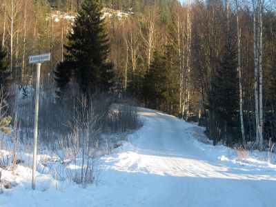 Motiv fra veien Andresplassen i Veggli i Rollag kommune.