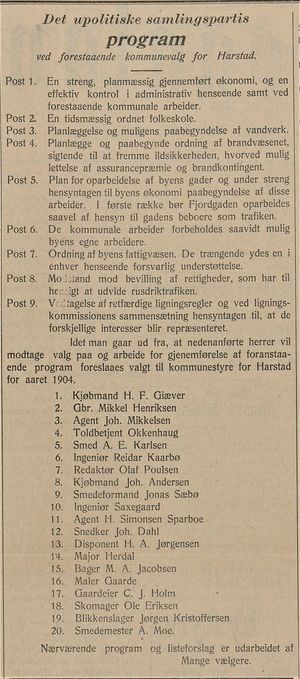 Annonse i utstillingskatalogen til Harstadutstillingen 1911 hvor han var en av jurymedlemmene for handverkerfag.