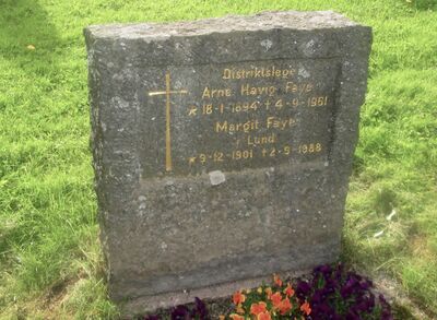 Arne Havig Faye er gravlagt på Asker kirkegård. Tittelen Distriktslege er benyttet på gravminnet.