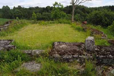 At kirken hadde kirkegård, bekreftes av et funn som ble gjort i 1925. Under arbeid på jordet ved kirkeruinen fant daværende bonde på Asak Østre, Oscar Asak, et helt menneskesjelett ca. 5 meter fra inngangen til kirken.
