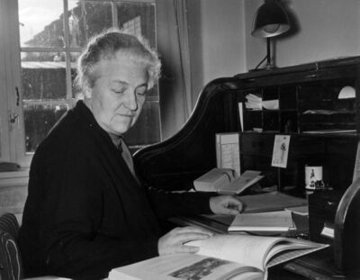 Astrid Bugge, den gong Schjoldager, tok examen artium i 1921 og magistergrad i kunsthistorie i 1927.