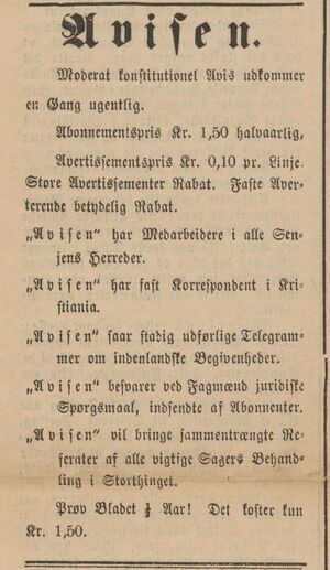 Slik annonserte avisa Avisen i eget organ for sine tjenester.