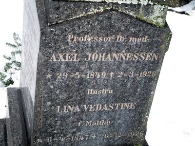 Axel Johannessen er gravlagt i familiegrav på Vår Frelsers gravlund i Oslo. Titlene Professor og Dr. med. er benyttet på gravminnet.