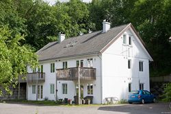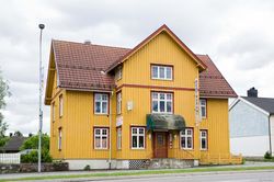 | 62 | Gnr. 53/302. Tomt 14 på 1 222 m² blei i 1919 skild ut som festetomt frå prestegarden til Tollef Fossheim. Dottera, Gunhild, gifte seg med Adolf Fredrik Hallstrøm frå Torshalla i Sverige, og dei fekk tomta og bygde hus i 1923. Hallstrøm reiste til Canada i 1927 og døydde der i 1940. Eldste sonen, Gunvald Hallstrøm, overtok festeretten i 1947 og bustaden i 1963. Han bygde verkstad attmed huset og starta Bø snikkarverkstad i 1950. Eigar frå 2016, Brukås sport AS. Eigedomen fekk bnr. 302 i 2012. | |