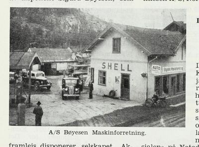 Sigurd Bøyesen sin maskinforretning var et aksjeselskap med aksjekapital på 10.000 kr rundt 1950. Forretningen omsatte landbruksmaskiner, biler, bilrekvisita, motorsykler, båtmotorer og lignende. I tillegg fungerte den som bensinstasjon (Shell). Forretningen bestod av bensinstasjon, verksted og garasje.