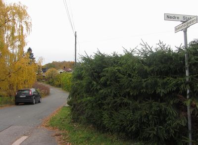 Parti fra Bakkehaugveien. Det gule huset ble revet i 2016 og erstattet av tre eneboliger.