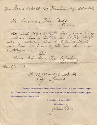 24. april 1927 var lagsmedlemmene gjort kjent med at Salangen-fiskeren Johan Nyset hadde omkommet på havet. På medlemsmøtet samme dag besluttet de å sende fem kroner av lagskassa pluss overskuddet fra et arrangement til enka som satt igjen med ungeflokken. Resultatet; kr. 13,95 (kr. 420,49 i 2018) ble overført til lensmannen i Salangen som kvitterte for beløpet med følgende ordlyd: «Sendes barnelogen Fremtidens Haap idet jeg paa enkens vegne vil fremføre min ærbødige tak for den opofrelse og menneskekjærlighed barnelogen her har vist. Sjøveien 14. mai 1927 Ærbødigst Johan Dahl». I takkeskrivet fra lensmannen ser vi en klassisk misforståelse: Barneavholdslaget er her blitt til en barnelosje, hvilket de altså ikke var. Det var IOGT og DNGTO som opererte med losjer og dertil hørende staffasjer. Avholdslaga og dertil hørende barneavholdslag var mer «jordnær» og slett ikke opptatt av stavnsmessige klasseinndelinger.