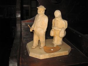 Han var ein habil treskjerar som skar ut fleire nøtteknekkarar med karakteristiske hovud. Han skar og ut persongrupper som av og til er nytta som sokkel til lamper. Bollar laga han av ulik slag. Han skar ut to store lysekroner med tilsvarande lampettar til Moland kyrkje i 1937 då kyrkja fekk innlagd elektrisitet. Desse vart bytta ut med meir moderne armatur i 1962, og treskurden blei flytt til andre stader. I 2. høgda på stabburet på prestegarden er eit stort rom som ein periode vart nytta til møterom. Den eine lysekrona og lampettar vart hengt opp der og den andre deponera på Fyresdal Bygdemuseum. I alle sine arbeid sette han inn karakteristiske andlet som kunne vere lett å kjenne att opphavet til. Av målarstykke kjenner ein berre til eit med motiv frå fjellet Roan som er ovanfor garden Veum.