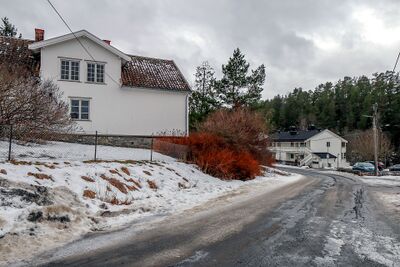 Parti fra starten på Berglyveien. Våningshuset på Lerdal gård til venstre.