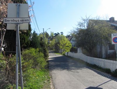 Veien fikk navn i 1922 etter gården Bernhus, som lå ved Ekebergveien 147.