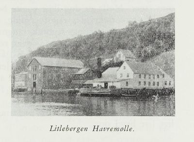 Litlebergen havremølle. Bilete frå boka Bygdemøllene i Norge av Johannes P. Skansen (1958).