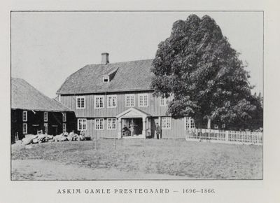 Askim gamle prestegard, fotografi fra boka Askim herred 1814-1914 av A. Haaheim (1914).