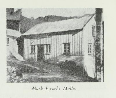 Mork elektrisitetsverks mølle. Bilde fra boka Bygdemøllene i Norge Johannes P. Skansen (1958).