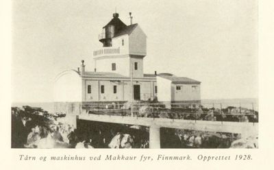 Makkaur fyrstasjon, fotografi fra boka Norges fyrvesen av C.F. Rode (1941).