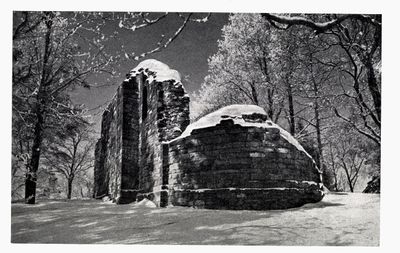 Kirkeruinen på Stein, bilde fra boka Norske storgårder av Axel Coldevin (1950).