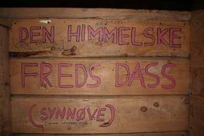 «Den himmelske freds dass», utedoen på studentkollektivet Solbakken, Vikebygda, Volda.