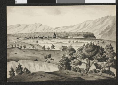Overhalla, tegning av Andreas Wulfsberg Grøtting, 1844.