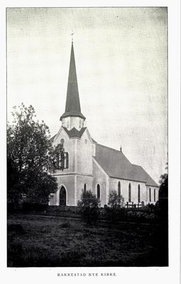 Rakkestad kirke, fotografi fra boka Rakkestad herred 1814-1914 av Torleiv H. Toftdahl (1914).