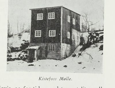 Kistefoss mølle, fotografi fra boka Bygdemøllene i Norge av Johannes P. Skansen (1958).