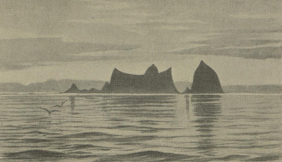 Bilde av Træna fra boka Glade minder fra landmaalerlivet av Hilmar Borchgrevink (1897).