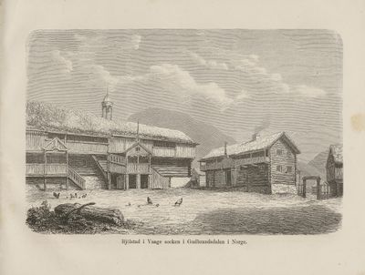 Vågå kyrkje, illustrasjon frå boka Nordiska taflor (1865).
