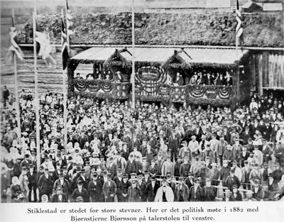 Politisk møte med Bjørnstjerne Bjørnson på Stiklestad i 1892. Fotografi fra boka Nord-Trøndelag i bilder (1957).