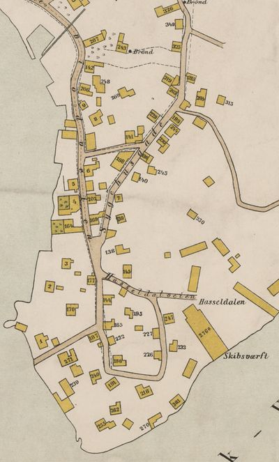 | Tomtene | Kildene | Oversiktskart 1890 | NB! Les innledningssiden: Tomter og folk i gamle Grimstad! |