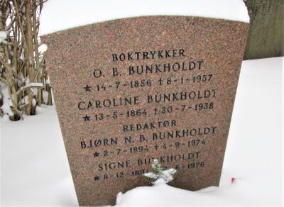 Bjørn Nicolai Bjørnsen Bunkholdt er gravlagt i familiegrav på Vestre gravlund i Oslo. Tittelen Redaktør er benyttet på gravminnet.