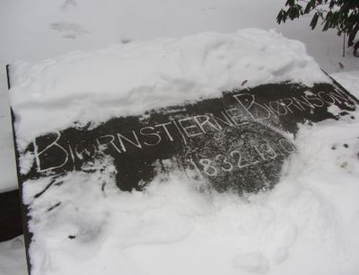 Efter at kisten var baaret ud af kirken, blev den sat op paa ligvognen, hvorpaa ligtoget satte sig i bevægelse mod Vor Frelsers gravlund. I spidsen for toget gikk Brigademusikken, 35 mand sterk. … Ligvognen blev ført med 6 heste. … Den første del av ligtoget gikk Ullevoldsveien helt opp til Akersbakken, hvor det svingede ad porten fra oversiden ind på kirkegården. Da togets begyndelse var naaet frem til Bjørnsons grav under den store pyramidepoppel midt på kirkegaarden, brød den nederste del af ligtoget af og gikk ind paa kirkegaarden ad porten ved Wesselsgade, hvor det fordeledes i de forskjellige gange op mod gravpladsen. ... Saa kommer den store flom af skolebørn ind på kirkegaarden, de, der skal dannne æresvagten ved graven – omkring 2000 skolebørn, pigerne i hvidt og gutterne i mørkt antræk, hver med sit lille flag i haanden,skole efter skole, hver med sin florbehængte fane i spidsen. … Tiden er inde: paa et givet tegn sænkes Bjørnstjerne Bjørnsons kiste med det norske flag over sig ned i graven. | ||