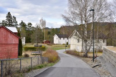 Bjarne Hansens vei sett nordover mot arbeiderboligene på Svelgfossletta.