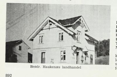 Brødrene Halvor og Andreas Haukenæs kjøpte forretningen av T. A. Sørensen i 1919. Det er Sørensen som har bygd husene. Brødrene drev forretning sammen i mange år, frem til Andreas gikk ut, og Halvor drev forretningen videre alene. Forretningen var en velassortert landhandel. Den omsatte kolonial, manufaktur, skotøy og isenkram.
