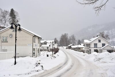 Brøløsvegen sett østover ved rutebilstasjonen.