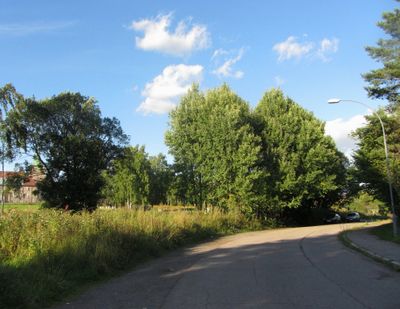 Motiv fra Bredtvetveien i Oslo. Til venstre i bildet skimtes Bredtveit fengsel, forvarings- og sikringsanstalt.
