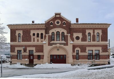 Vindusrekken i andre etasje og portalen i første er preget av rundbuestil. Fasaden mot gaten har en midtrisalitt som markerer hovedinngangen i en buet portal og gir bygningen funksjonen som en byport.